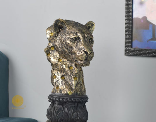 Rustic Antique Tiger Face Statue (7x15 Inches)