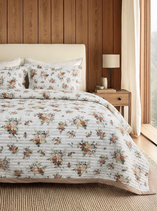 Luxury Soft Floral Quilted Bedcover with Matching Pillow Covers