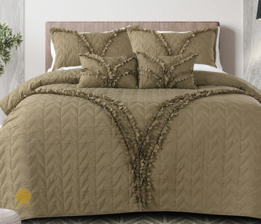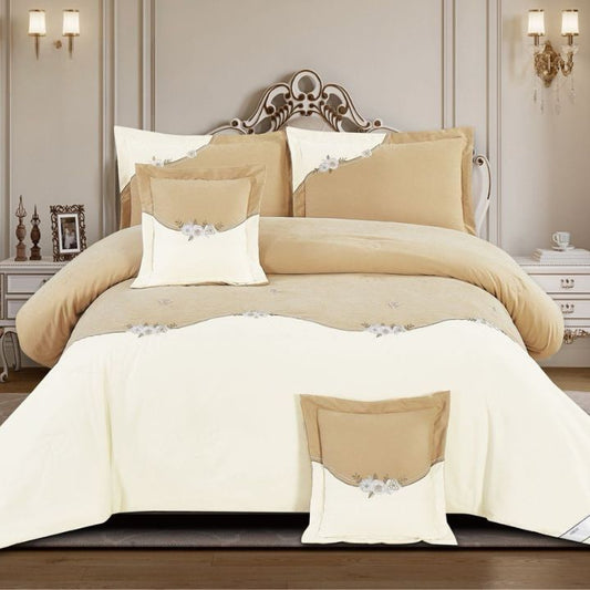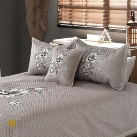 Flower Garden Luxury Quilted Embroidery Bedding Set of 5 Pcs