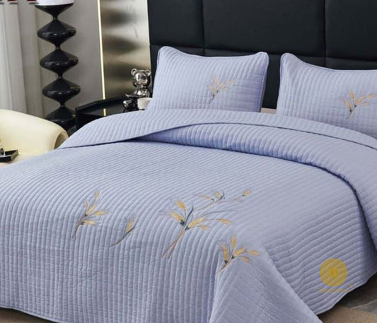 PARADISE SOLID COLOUR QUILTED BEDCOVER WITH HEAVY EMBROIDERY