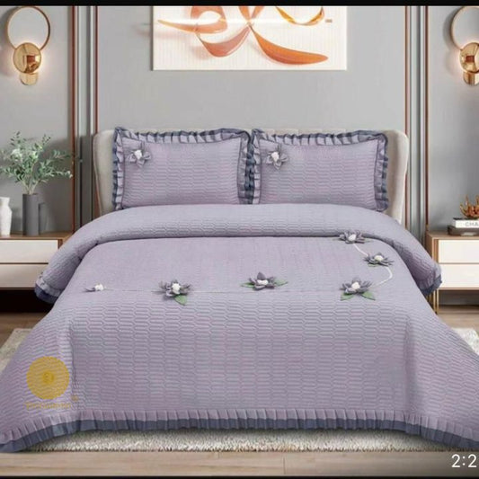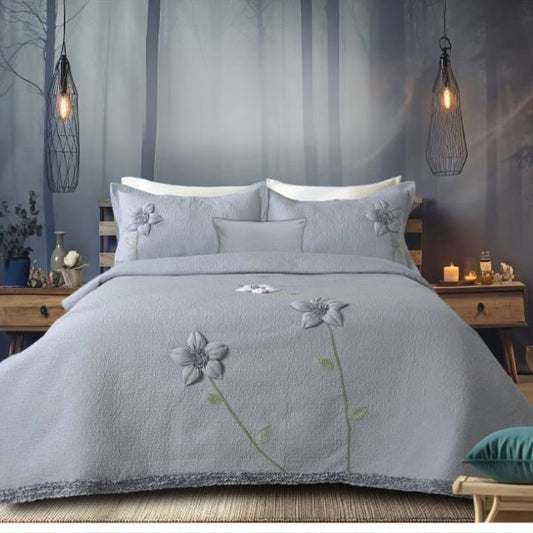 Cotton Embroidered 3pcs Quilted Bedspread Set