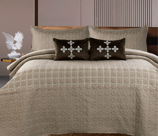 EMBROIDERIED King Size Quilted Bedcover Set of 5
