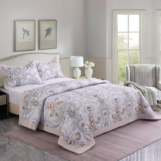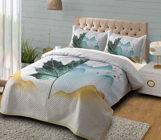 Imported Heavy Glace Cotton Quilted Digital Printed Panel Bedcover