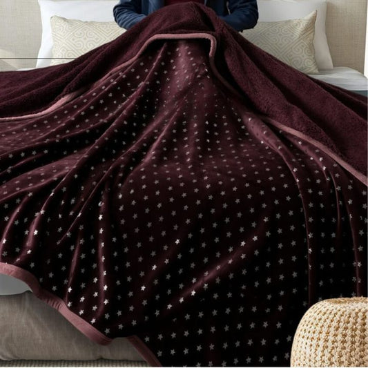 LUXURIOUS & PREMIUM QUALITY IMPORTED SOLID COLOUR METALLIC STAR BLANKET with BACKSIDE SHERPPA
