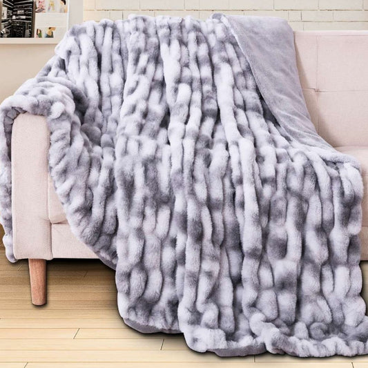 luxurious Dual Colour Cloudy Rabbit Fur Mink Blanket