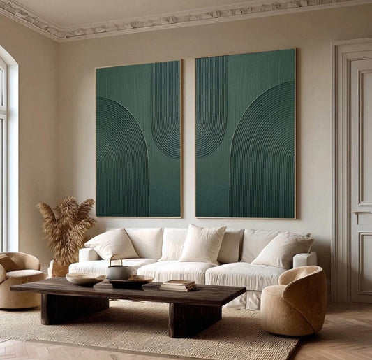 Set of 2 Green Abstract Painting |Set of 2 green textured wall art Green Abstract Green wall decor canvas art