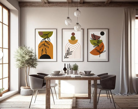 Set of 3 Modern Botanical Geometric Wall Art – Minimalist Abstract Prints