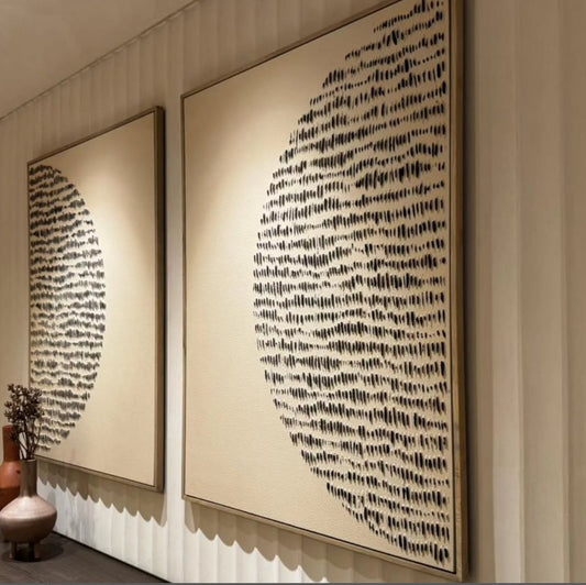 Minimalist Black & White Abstract Circle Wall Art – Set of 2 | Modern Geometric Canvas with Wooden Frame