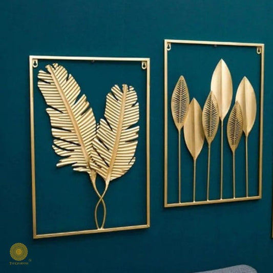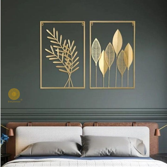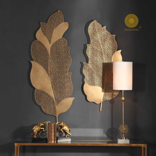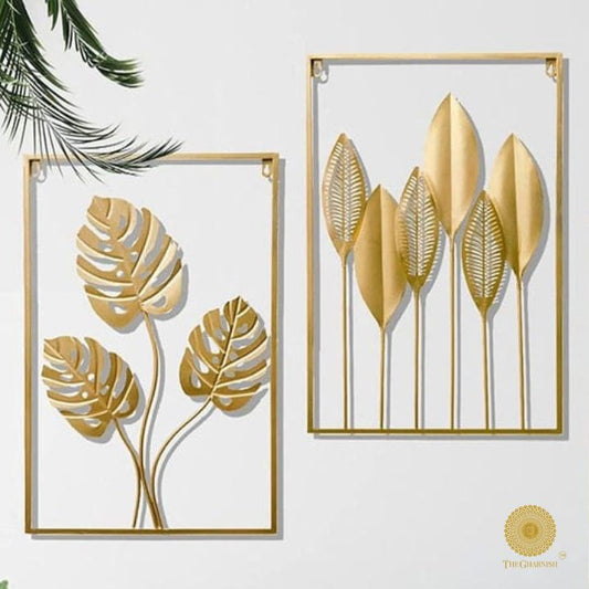2 Metallic Jalidaar Leaves Wall Art
