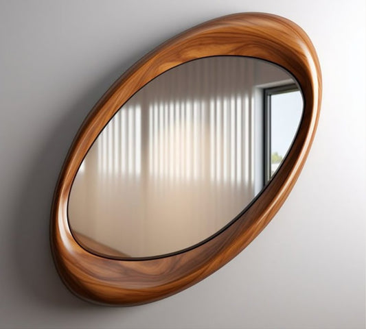 Organic Walnut Frame Mirror – Modern Asymmetrical Wall Mirror for Bedroom & Living Room