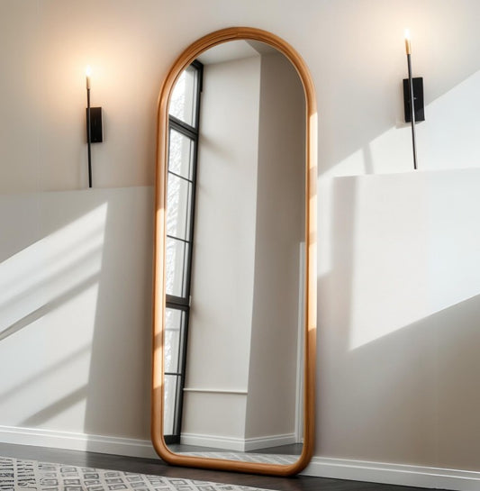 Walnut Full Body Mirror for Bedroom & Living Room, Mid Century Large Mirror, Asymmetrical Tall Floor Mirror