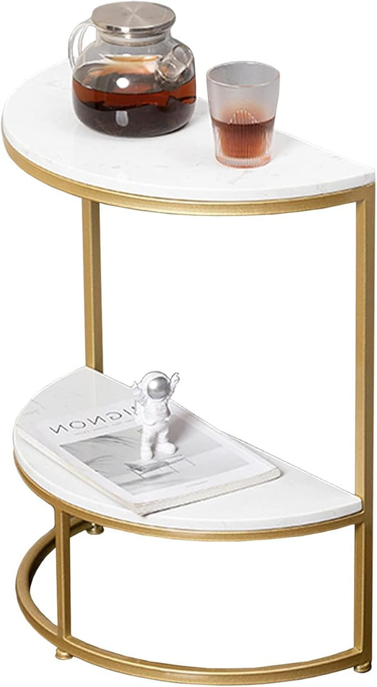Half Round Side Table with Storage Shelf/Space Saving Narrow Accent 2-Tier Sofa Couch Table for Living Room, Bedroom