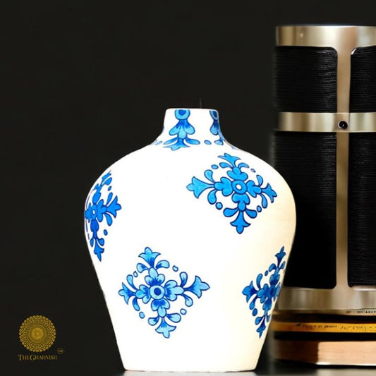 Oversized Hand Painted Ceramic Blue Pottery Vase
