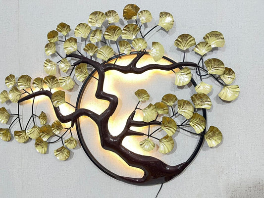 Metallic Golden Leaves Tree With LED (54 X 36 Inches )