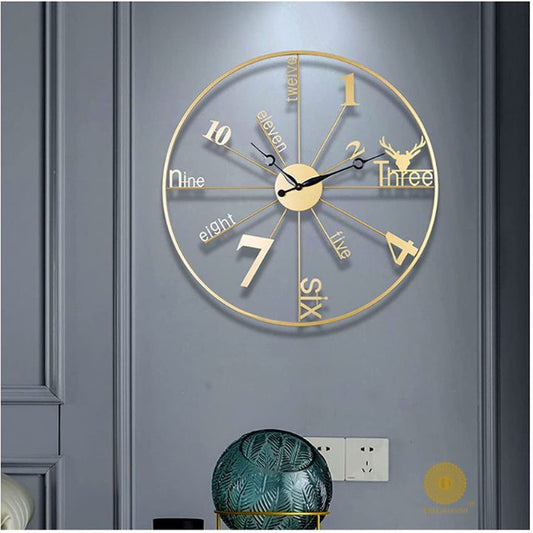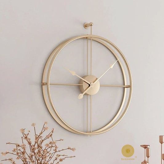 Metallic Double Wheel Wall Clock - Gold (24 Inches Dia)