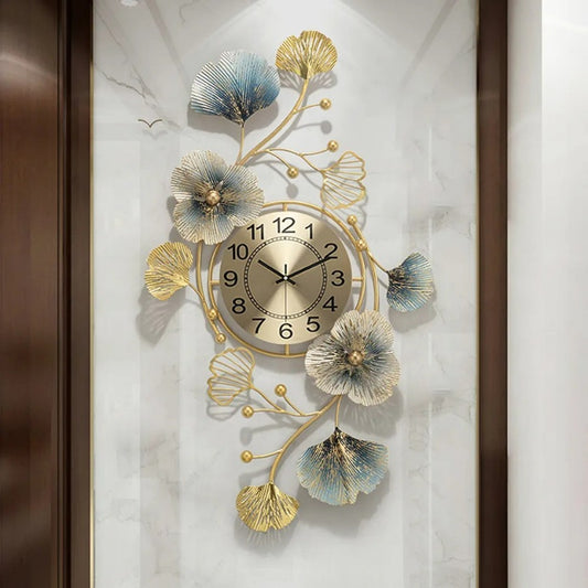 Floral Metallic Wall Hanging Clock - 48 x 18 Inches