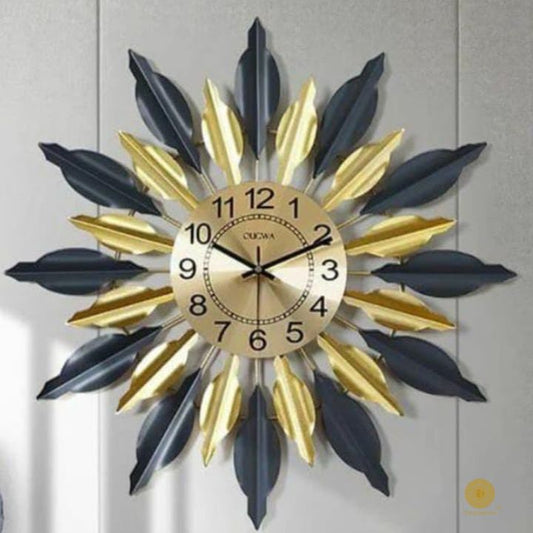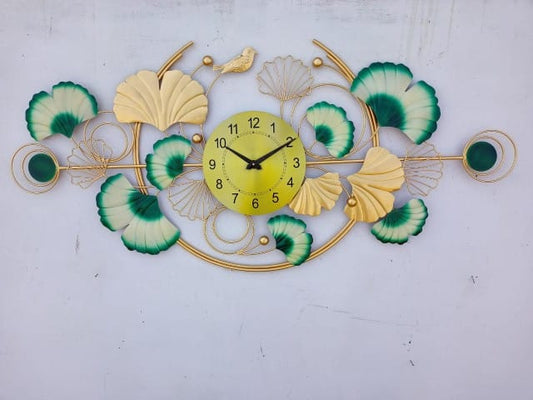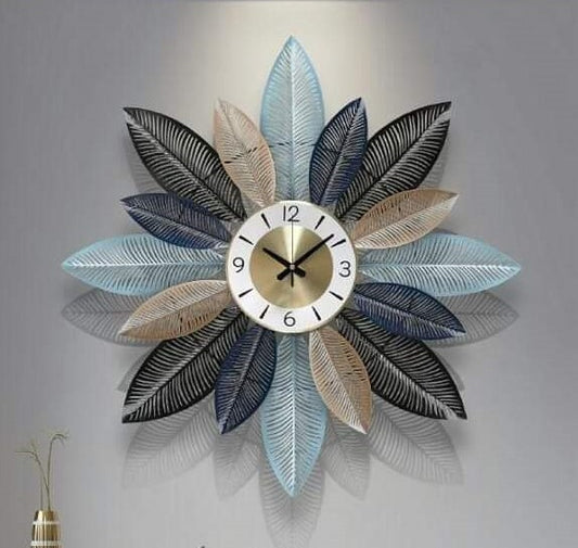 Premium Leaf Flower Metallic Wall Clock (24 Inches Dia)