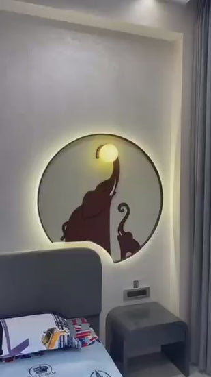 Premium Elephant Family Wall Hanging – Modern 3D Artwork brings a touch of elegance, warmth, and positivity to your home. Designed in a stunning round golden frame, this premium artwork features a beautifully crafted mother-and-baby elephant duo in rich brown tones, symbolizing strength, protection, and family love.
